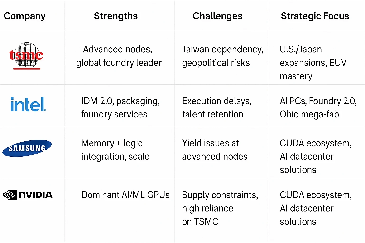 The semiconductor future hinges on fab dominance, AI integration, and geopolitical strategy. While TSMC leads today, the rise of NVIDIA, the comeback of Intel, and the strategy of fabless giants could shift the leaderboard dramatically by 2035.